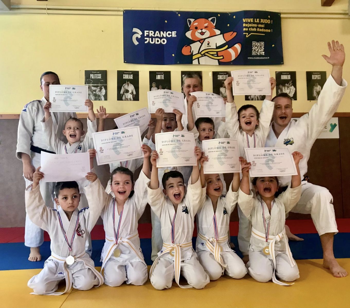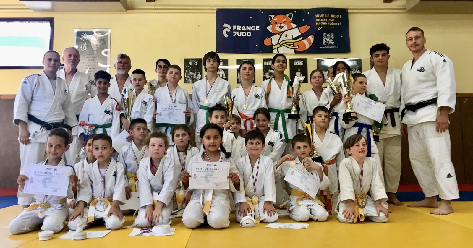Remise des ceintures pour nos jeunes et moins jeunes, symbole de leur travail et de leur persévérance sur les tatamis.